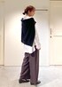 シャツ:フリーサイズ パンツ:Mサイズ トップス:フリーサイズ 生地がしっかり、大きめなシルエットのニット。肩にかけても可愛いです。大人のカジュアルスタイルにぴったりな一枚です。