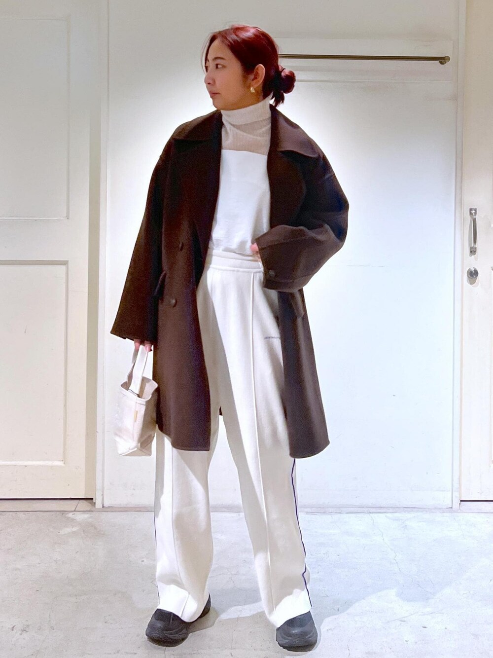 アウター:フリー トップス:フリー キャミソール:フリー パンツ:フリー バッグ:フリー ブーツ:私物 大人気のクリーミーコットンシリーズの新作予約が始まっています! シンプルなデザイン、すとんと落ちるシルエットなのでレイヤードスタイルも楽しめます。 タートルとキャミソールで首元はしっかり暖かく、素材感の違いを取り入れてみました。