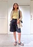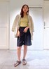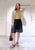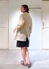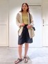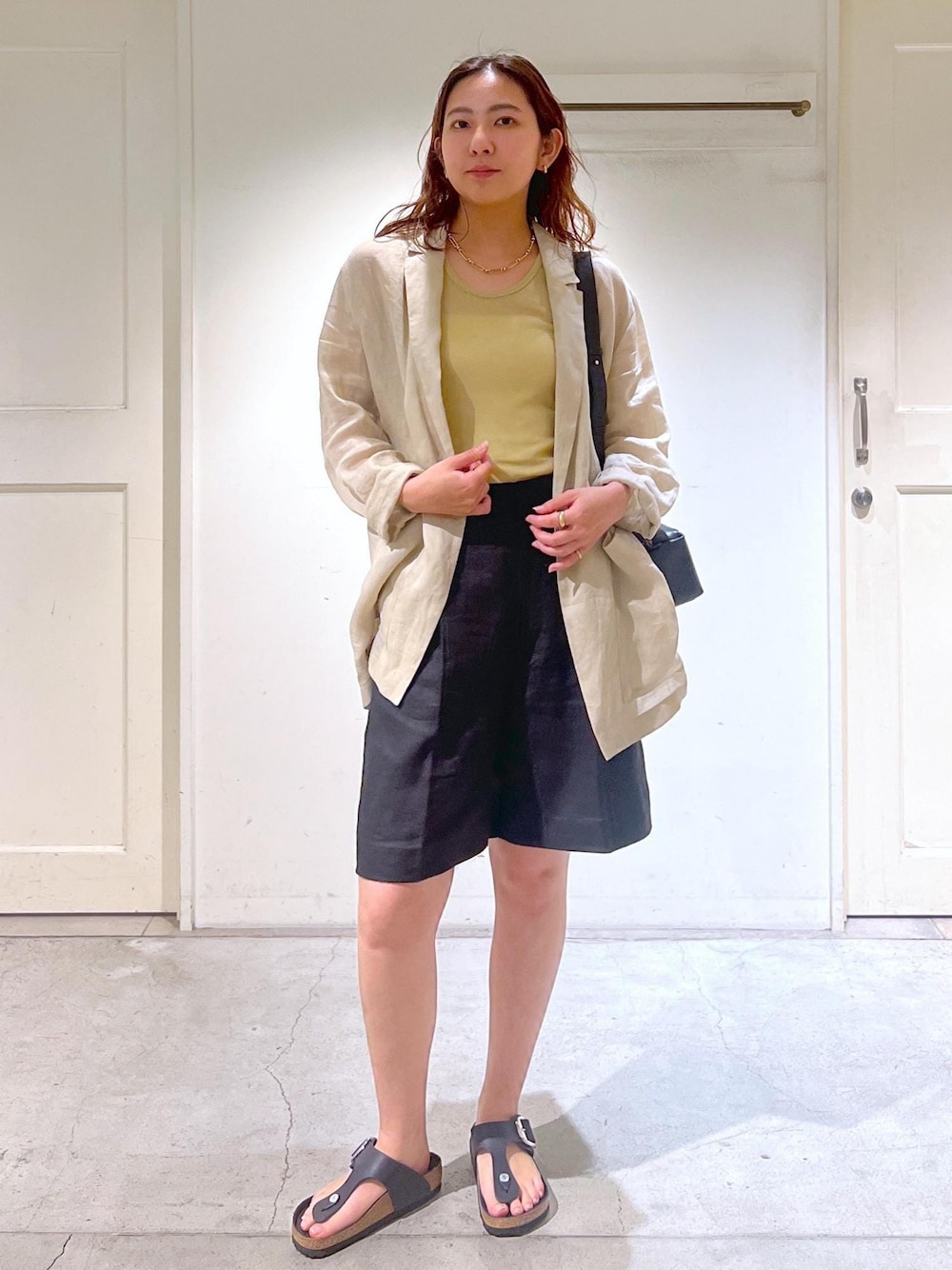ボーイッシュなハーフパンツですが、タック入なので綺麗見え!夏らしいリネン素材で、ジャケットも合わせてリネンのもので季節感を。