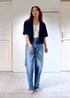 ショート丈で使いやすいヴィンテージサテンジャケット。つやっとした光沢があり上品な印象なので、あえてデニムと合わせてカジュアルなスタイルにしてみました。 ネックレス:【トゥアレグ】お問い合わせ番号 SBZ53140