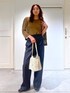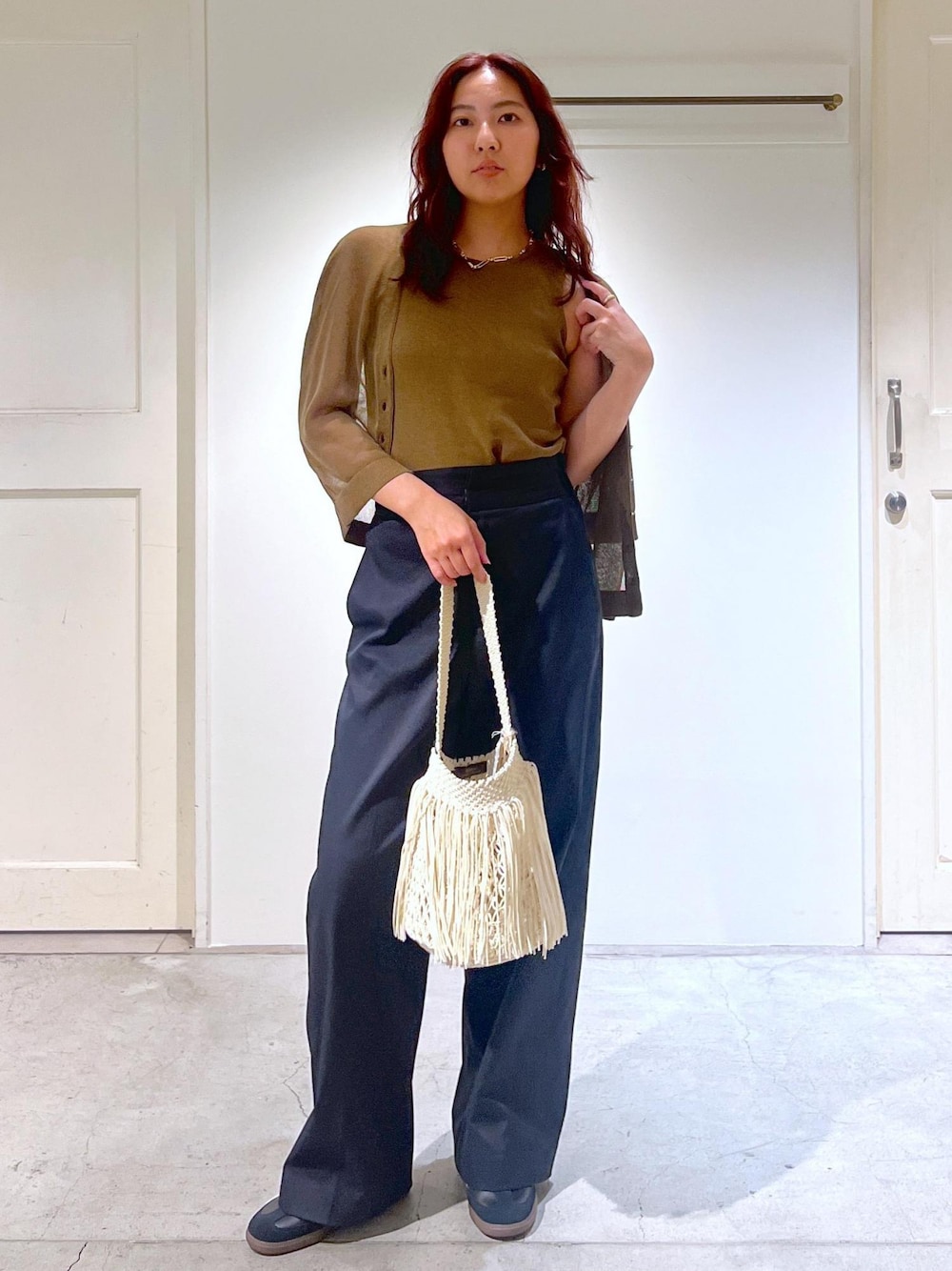 いつものカーディガンも肩にかけてみるだけで雰囲気がぐっと変わります。冷房が強い室内ではすぐに羽織れるので個人的によく使う戦術です。