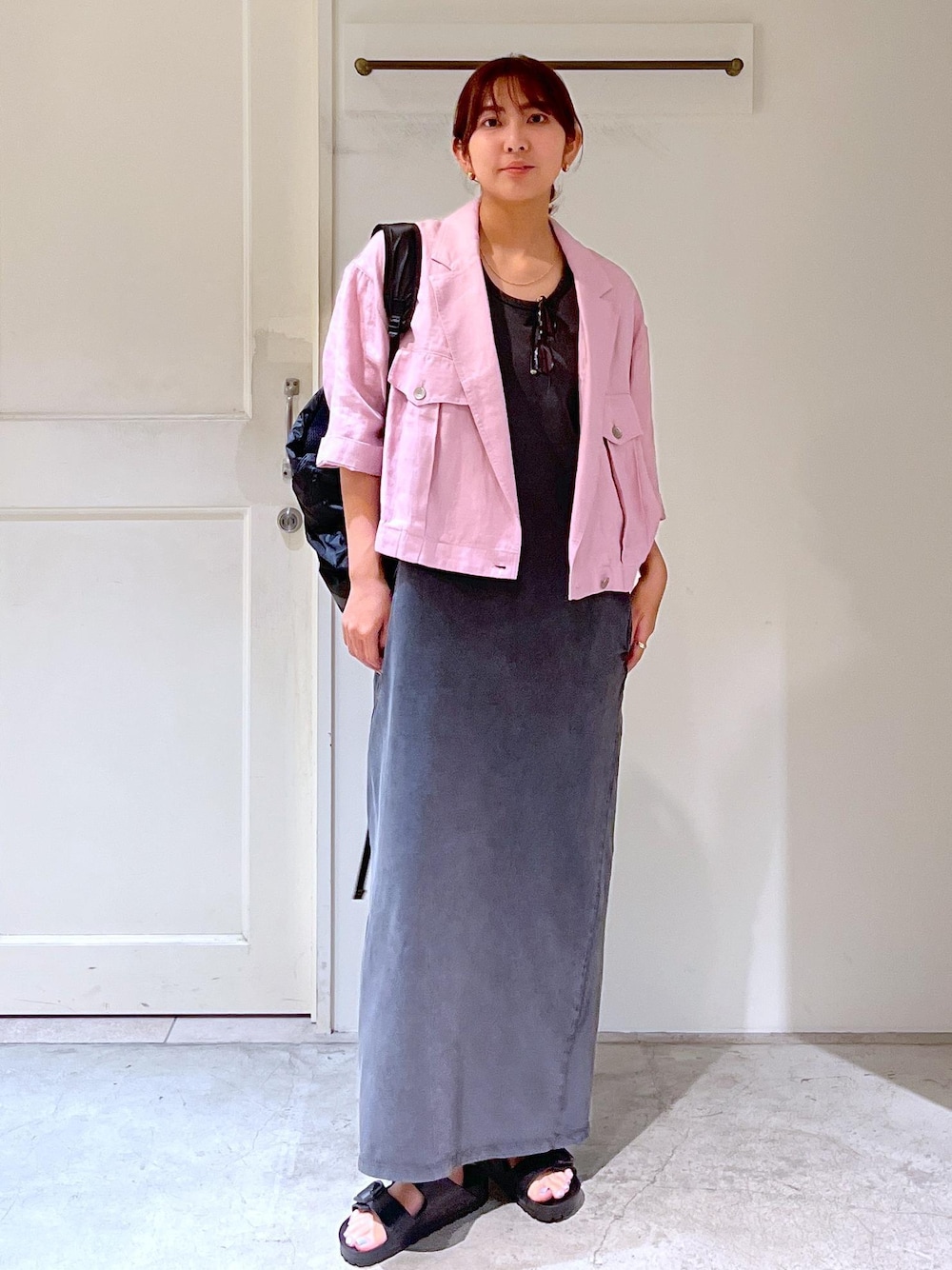 ナチュラルすぎない綺麗めな印象ですが、素材は重たすぎず、さらっとシャツ感覚で羽織れるブルゾン。 短めな丈を生かしてワンピースと合わせてみました。 どのアイテムも日常高いしやすい、一押しのアイテムです!