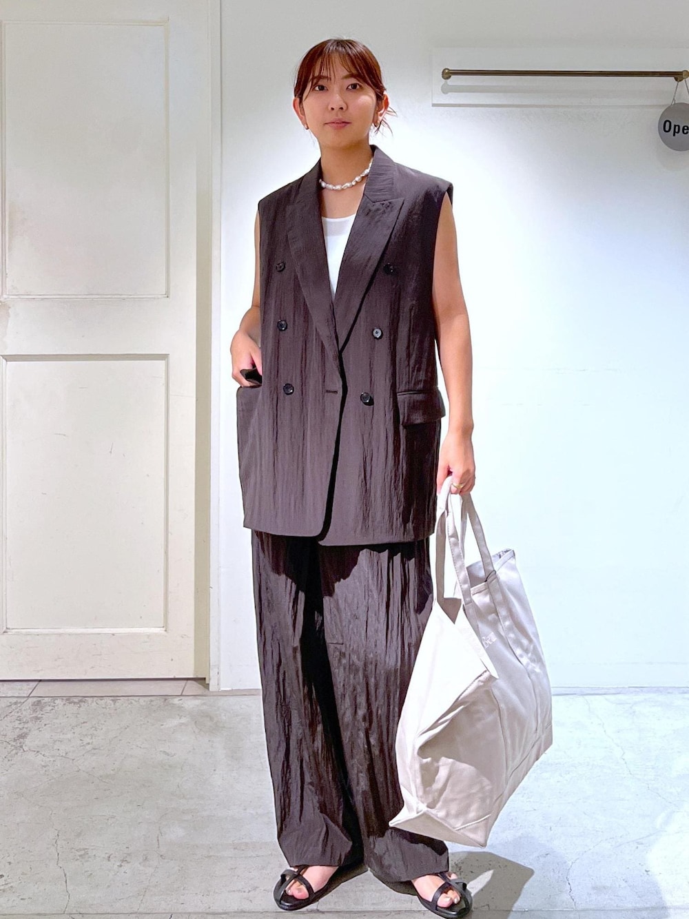 シボ感が可愛い素材とゆったりしたサイズ感の抜け感で、綺麗めすぎないジレとパンツです。 深めのブラウンがとても可愛くてリアルバイしたロングシーズンつかえるアイテムたちです。 大人気のL.L.Beanの別注シリーズも発売中。 要チェックです。 アクセサリー:私物