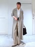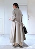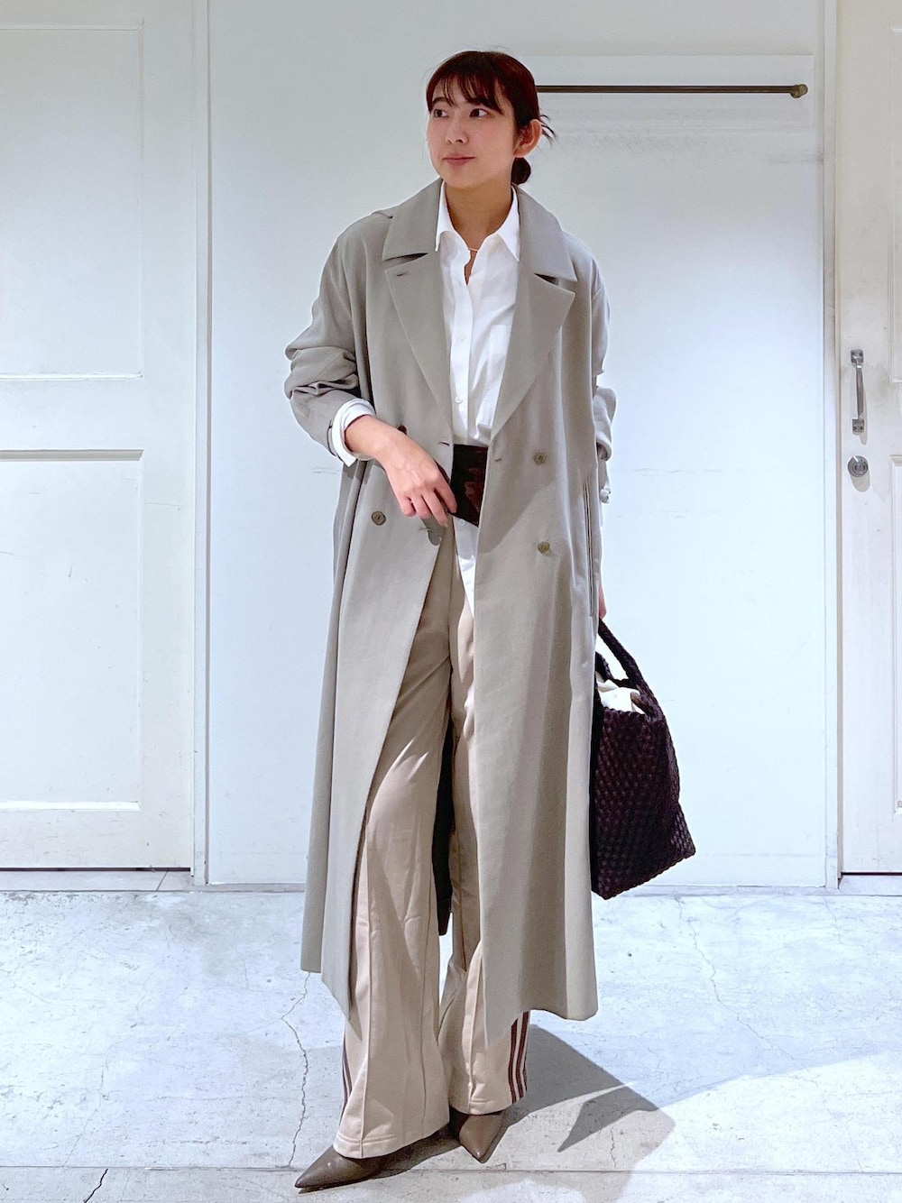 柔らかいカーキの色味と、たっぷりしたサイズ感。 固すぎずドレープ感があるのでさっと羽織りやすいです。