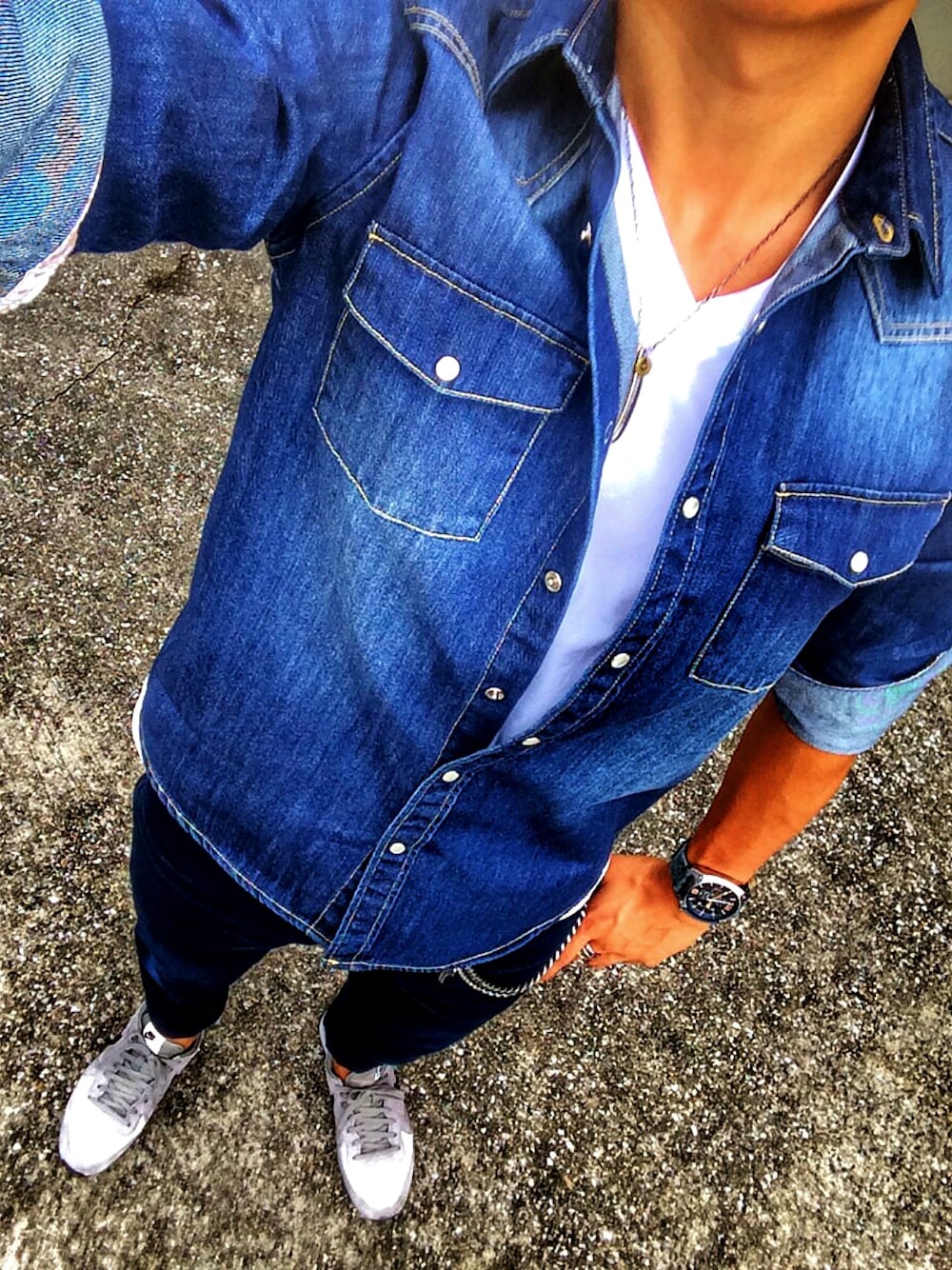 デニデニコーデ👕👖 こちらも10月頃のコーデです😂 デニムはリジッドで育て中です👖 育て始めて1年半ぐらいなので、これからが楽しみな1本です💙