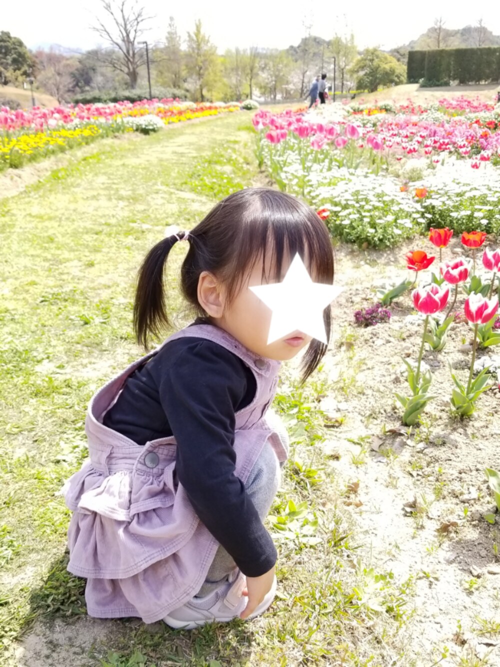 パープル系のジャンパースカートを着用したキッズの春コーディネートの1枚目の写真