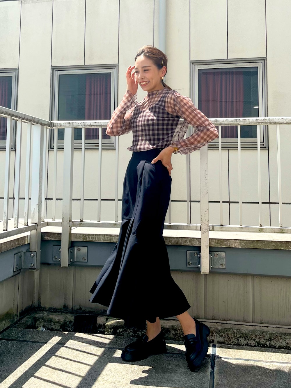 natsumi(FREE'S MART ルミネ池袋)のTシャツ/カットソー「◆シアーチェックハイネックカットソー」を使ったコーディネート
