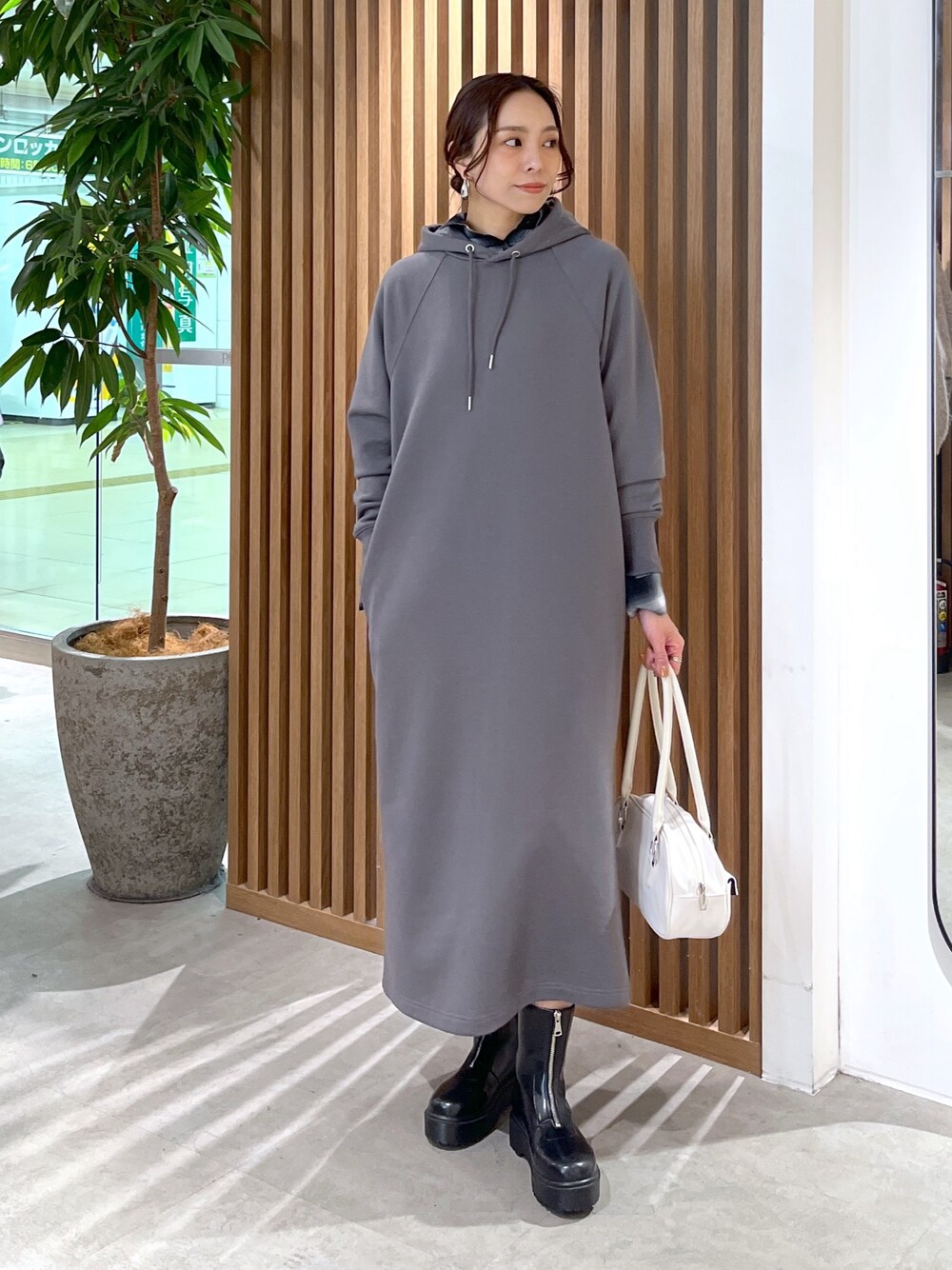 natsumi(FREE'S MART ルミネ池袋)のワンピース「◆裏毛フード付ロングワンピース」を使ったコーディネート