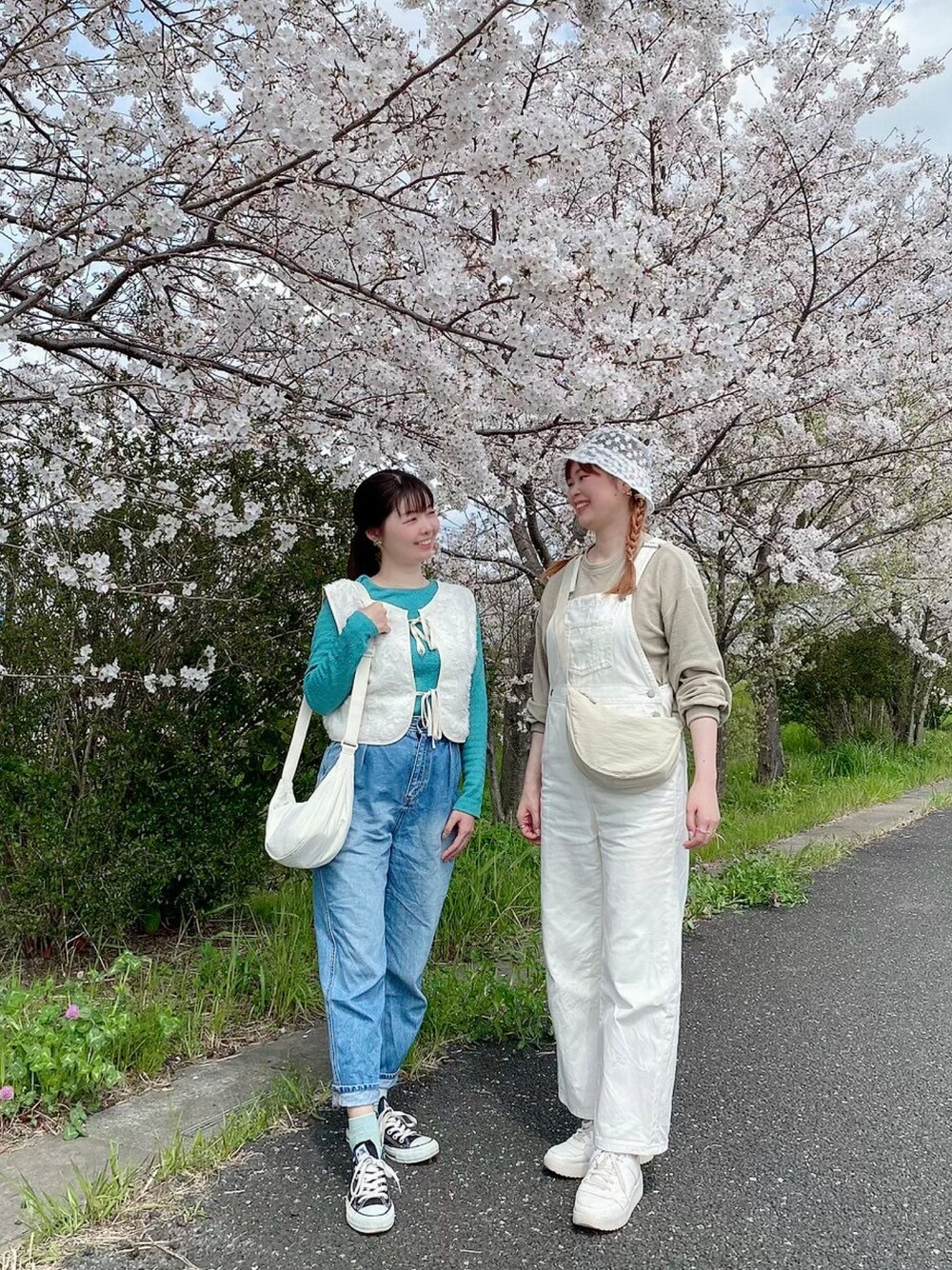 お花見したよ🌸 春のカジュアルコーデ🍀 ラウンドミニショルダーは妹とお揃い🫶