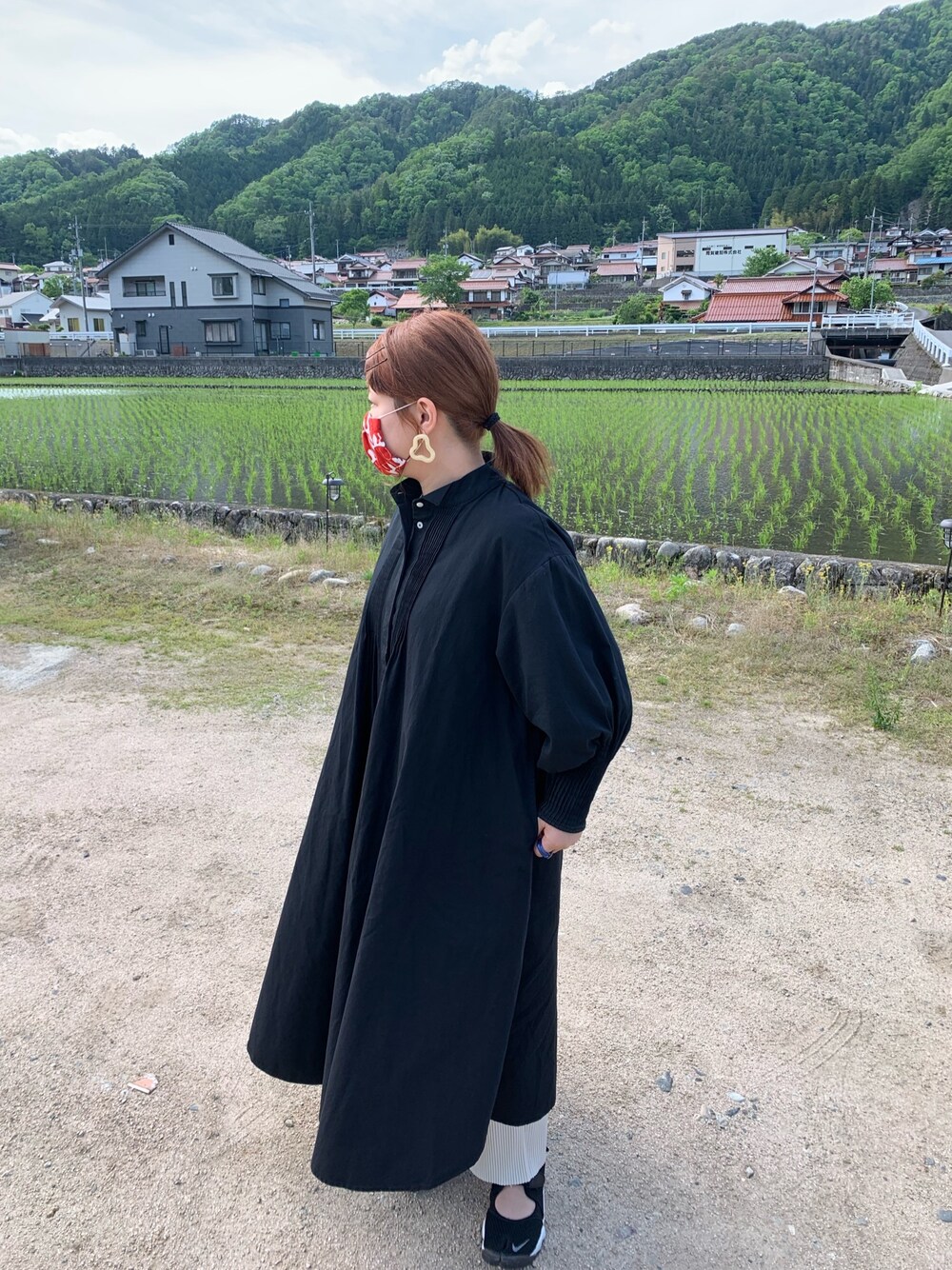ナ ツ ミのシャツワンピース「ウィングカラーピンタックワンピース」を使ったコーディネート