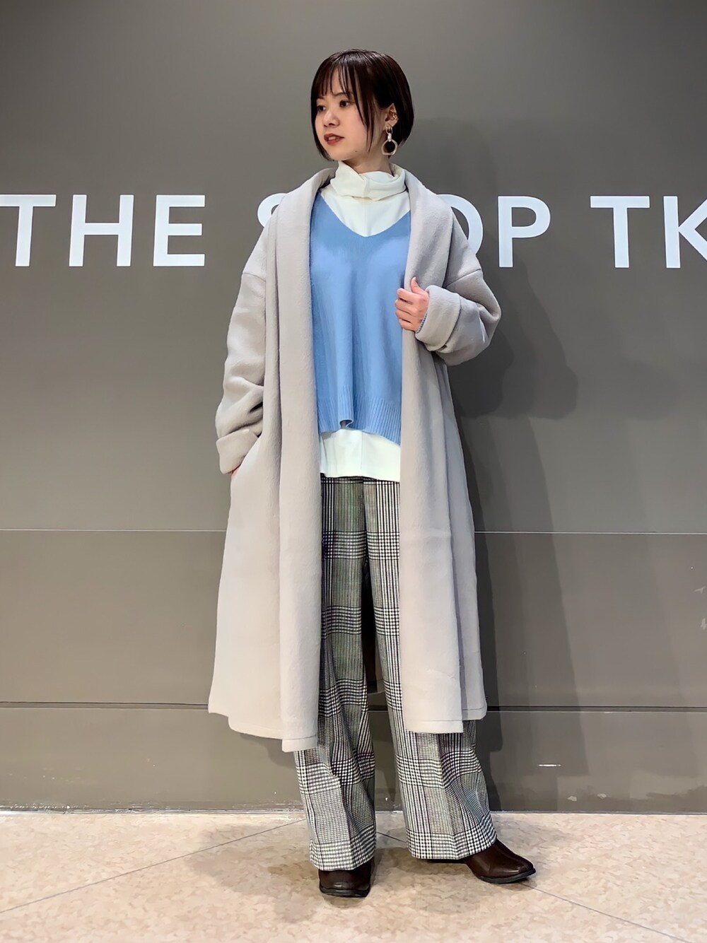 kozu(大丸下関店 インデックス)のノーカラーコート「フリースガウンコート」を使ったコーディネート