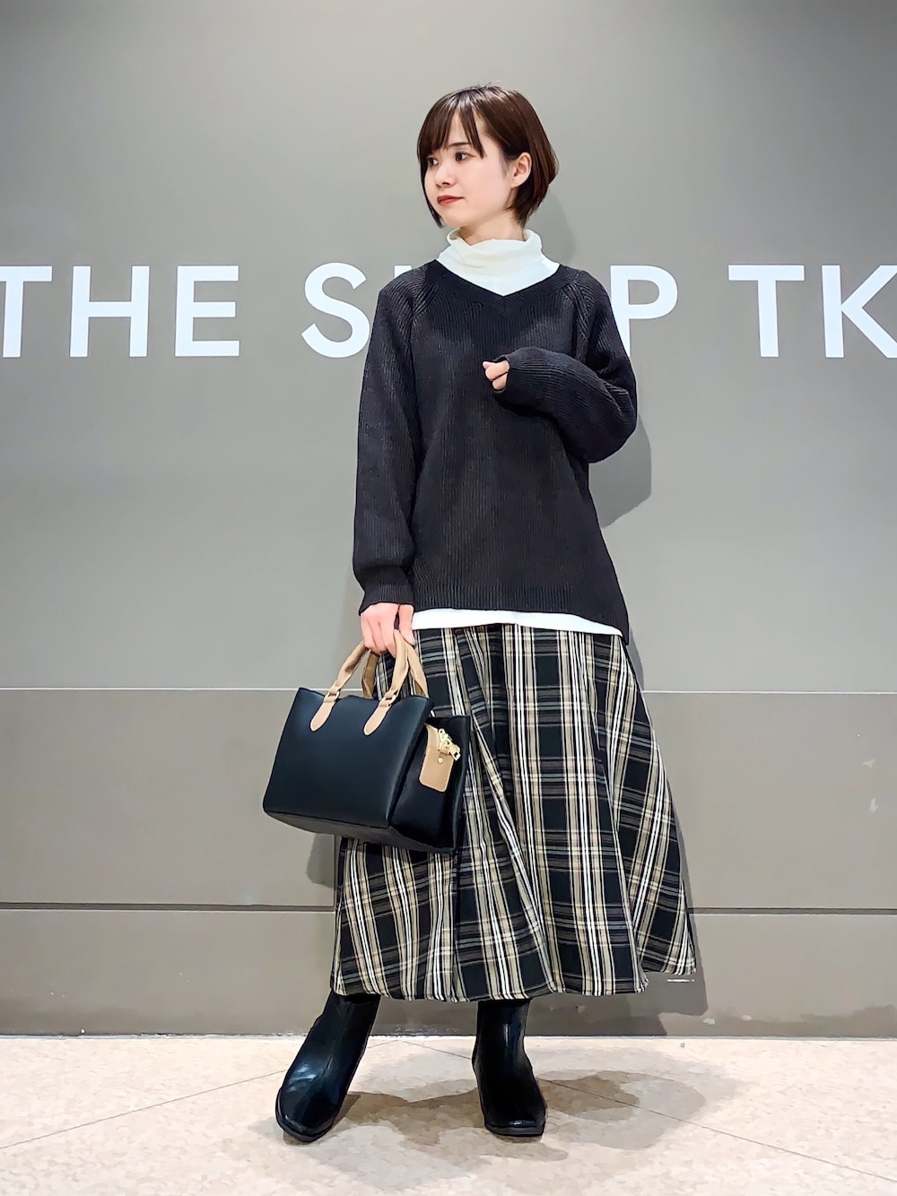 チェック柄はコーデの主役😎 着丈はミモレ丈で丁度良く履けました♪ ◆ニット チクチク感がないのでニットが苦手な方にもオススメです₍ᐢ。•༝•。ᐢ₎
