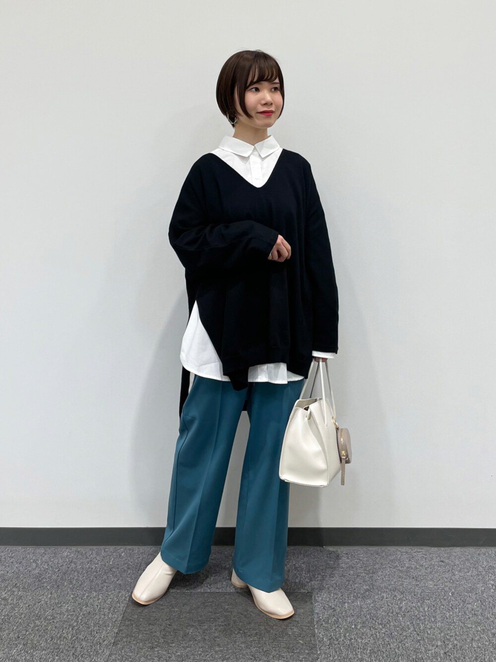 ポンチョニット×ワイドパンツ ▪ポンチョニット チクチク感なくラフに着られて◎ アウターはまだ早いなって時に最適! ▪ワイドパンツ トレンドのブルーが大人っぽく洗練された雰囲気に😎 低身長さんにも嬉しいXSからのサイズ展開です♡