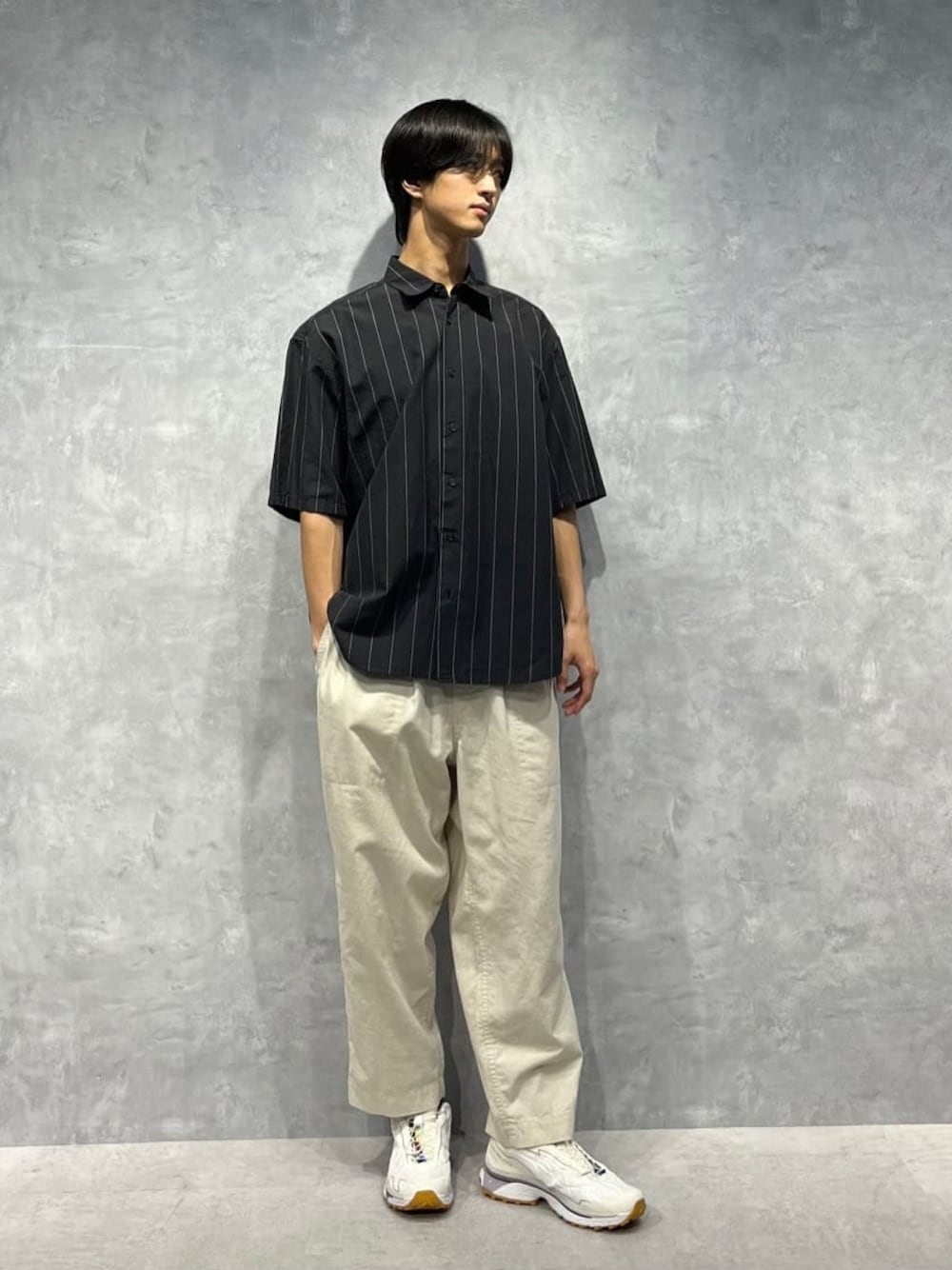 旭 惟吹のシャツ/ブラウス「レギュラーカラーコットンリネンストライプシャツ」を使ったコーディネート