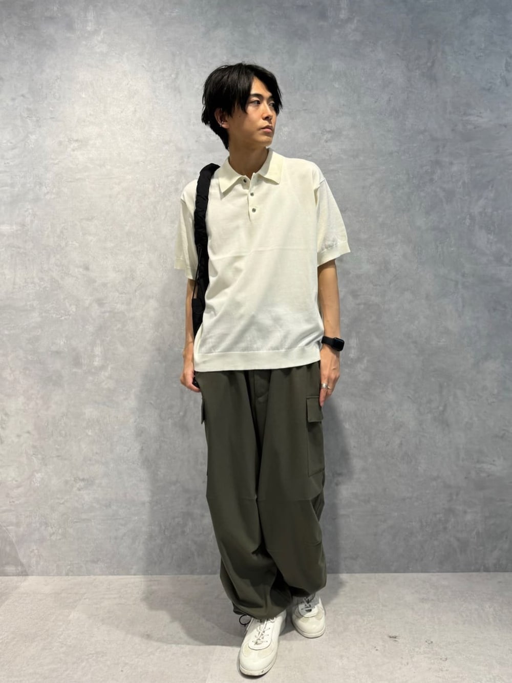 【サイズ感】 トップス/標準的 ボトムス/ややゆったりめ 【コーディネートポイント】 ポロシャツの色合いがオフホワイトでシルエットもおしゃれでおすすめ!