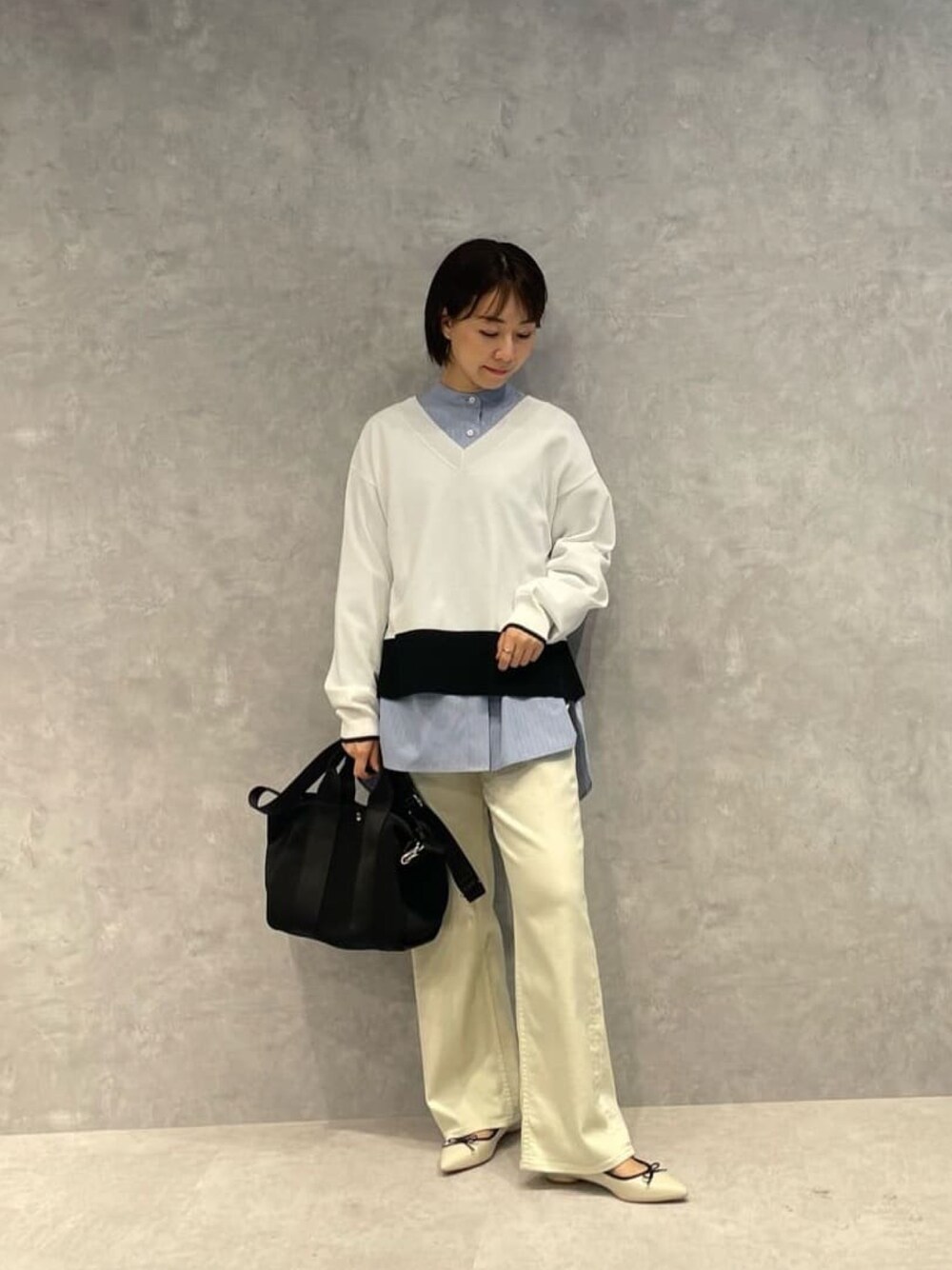 【サイズ感】 トップス/ゆったり シャツ/ゆったり ボトムス/標準的 【コーディネートポイント】 ストライプのシャツをレイヤードして、着痩せ効果もあるオフィスカジュアルにもピッタリなスタイルです!