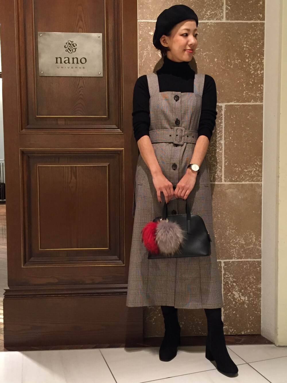 nano・universe グランフロント大阪 STAFFのワンピース「【SOUP.+ 1月号掲載】【mina 12月号掲載】 グレンチェックベルト付ワンピ」を使ったコーディネート