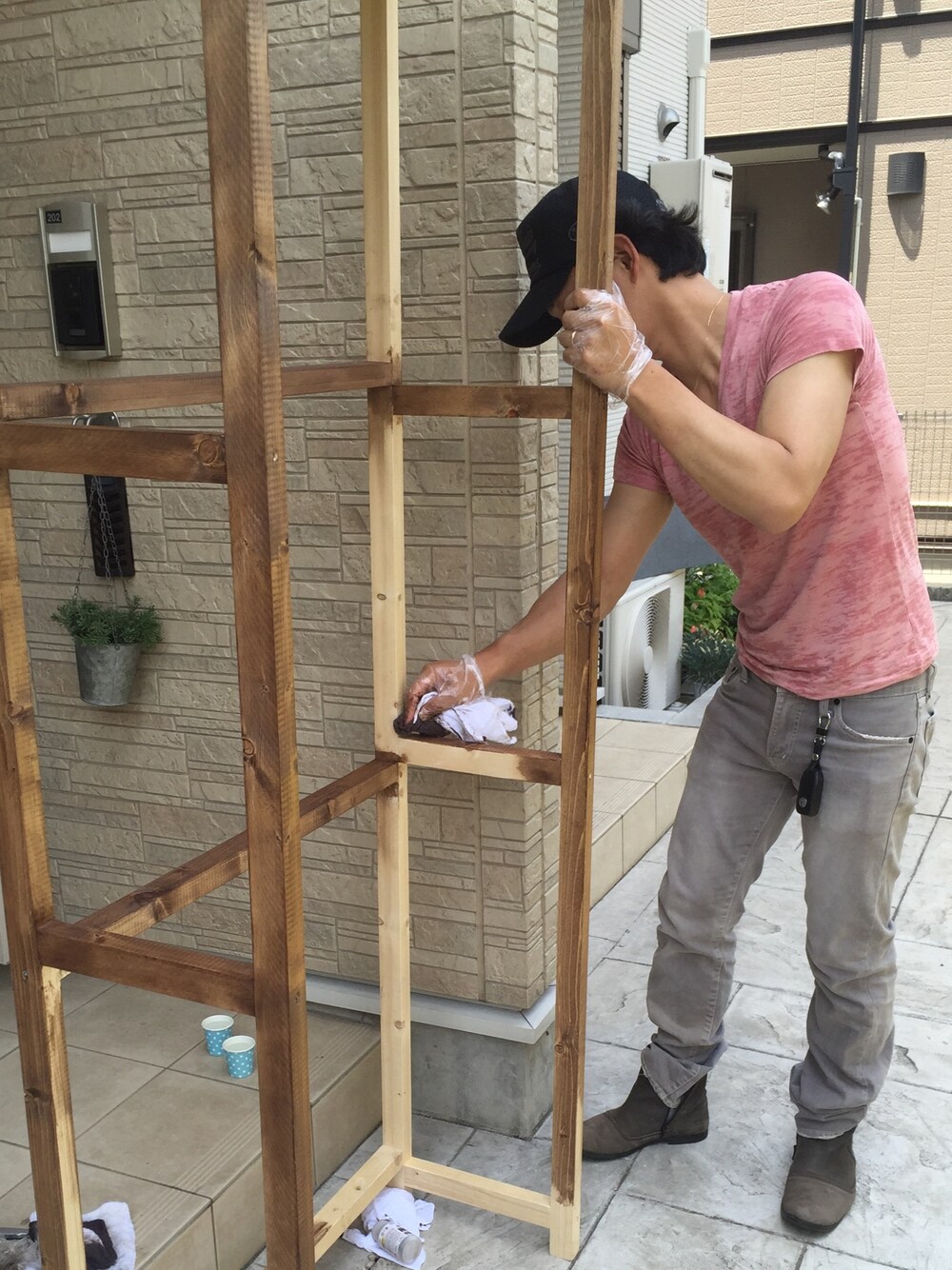 息子が本を読みながら爆睡してくれたので、嫁と洗濯ラックを製作✨ 途中目覚めて作業の邪魔をされたけど、何とか完成👍 個人的に一番着心地が良いオルタナティヴのカットソー💕