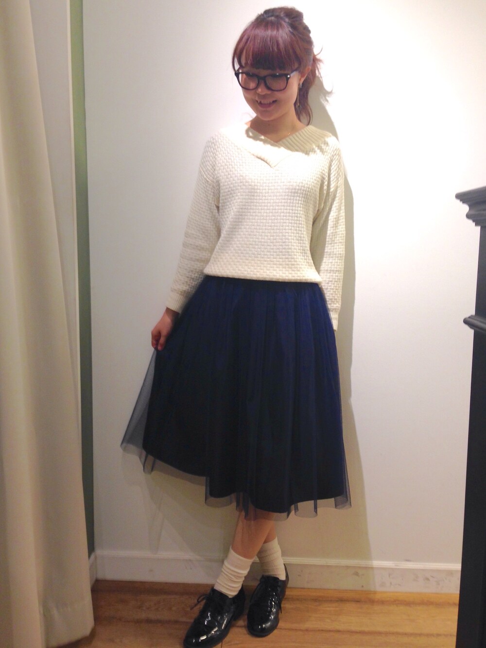 いつぞやのアウター無いver. シンプルなコーデに小物を挿すのが好きです。 あんまり写ってないけど、reeferのピアスとageteのネックレスで顔周りをキラッと☆ @MAJESTIC LEGON名古屋近鉄店
