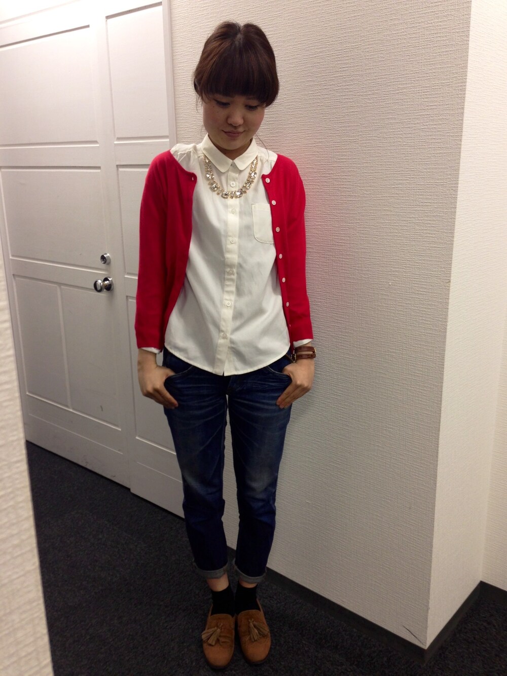 今日はマジェの大阪オフィス内で撮影。 すぐそこは社長室!どきどき! このタッセルシューズかなり長く履いてます! ちょっとメンズな足元が好き♡ マジェのシャツは襟が小さめで普段使いに◎
