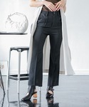 〜No Oshere No Life〜 見ていただきありがとうございます☻ 着回し力バツグンなデニムシャツはバンドカラーでスッキリと! うしろスリットのフレアパンツは形がとってもキレイな細見え♡