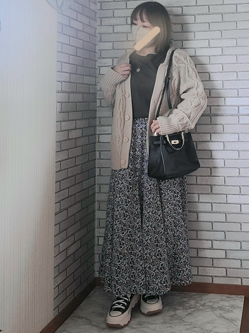 〜No Oshere No Life〜 見ていただきありがとうございます☻ 寒くなるとニットカーデ 着たくなりますね〜☆ 軽くて暖かくて着心地も良い! 1枚あると便利です♪ 最近購入したCONVERSEの厚底スニーカーでカジュアル感を付け足しました!
