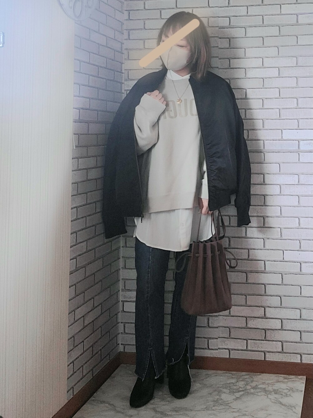 〜No Oshere No Life〜 見ていただきありがとうございます☻ カジュアルスタイルも ブラウスでレイヤードすると きれいめに仕上がりますね! MA-1が羽織れる季節に なって来て嬉しいです♪