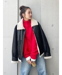 numacoのムートンコート「フェイクムートンボアブルゾン」を使ったコーディネート
