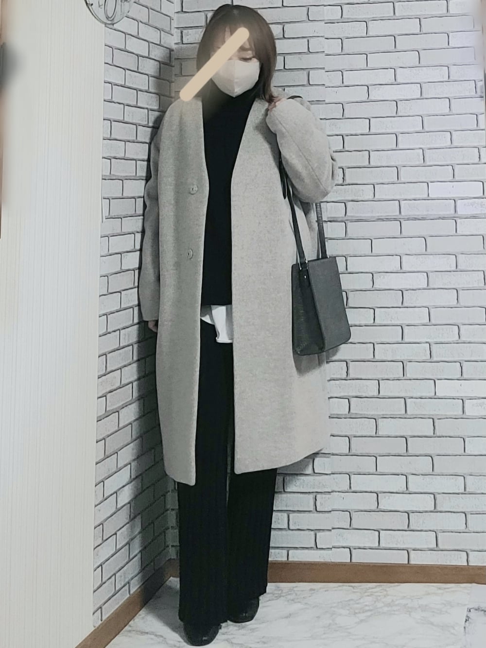 numacoのノーカラーコートを使ったコーディネート