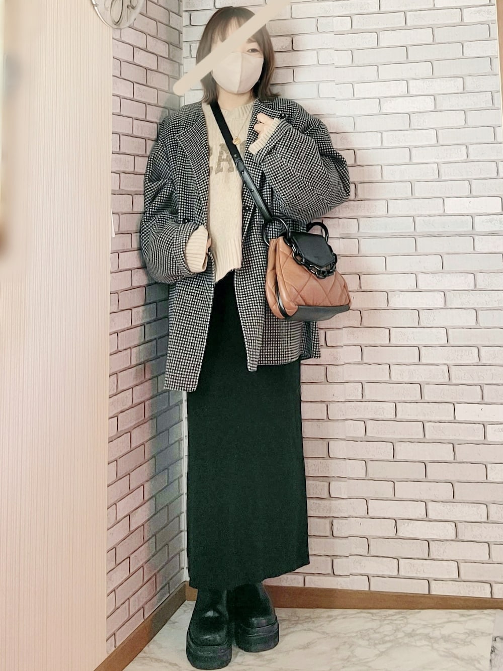 numacoのノーカラーコート「《追加》HAMILTONダブルフェイスウールショートコート」を使ったコーディネート