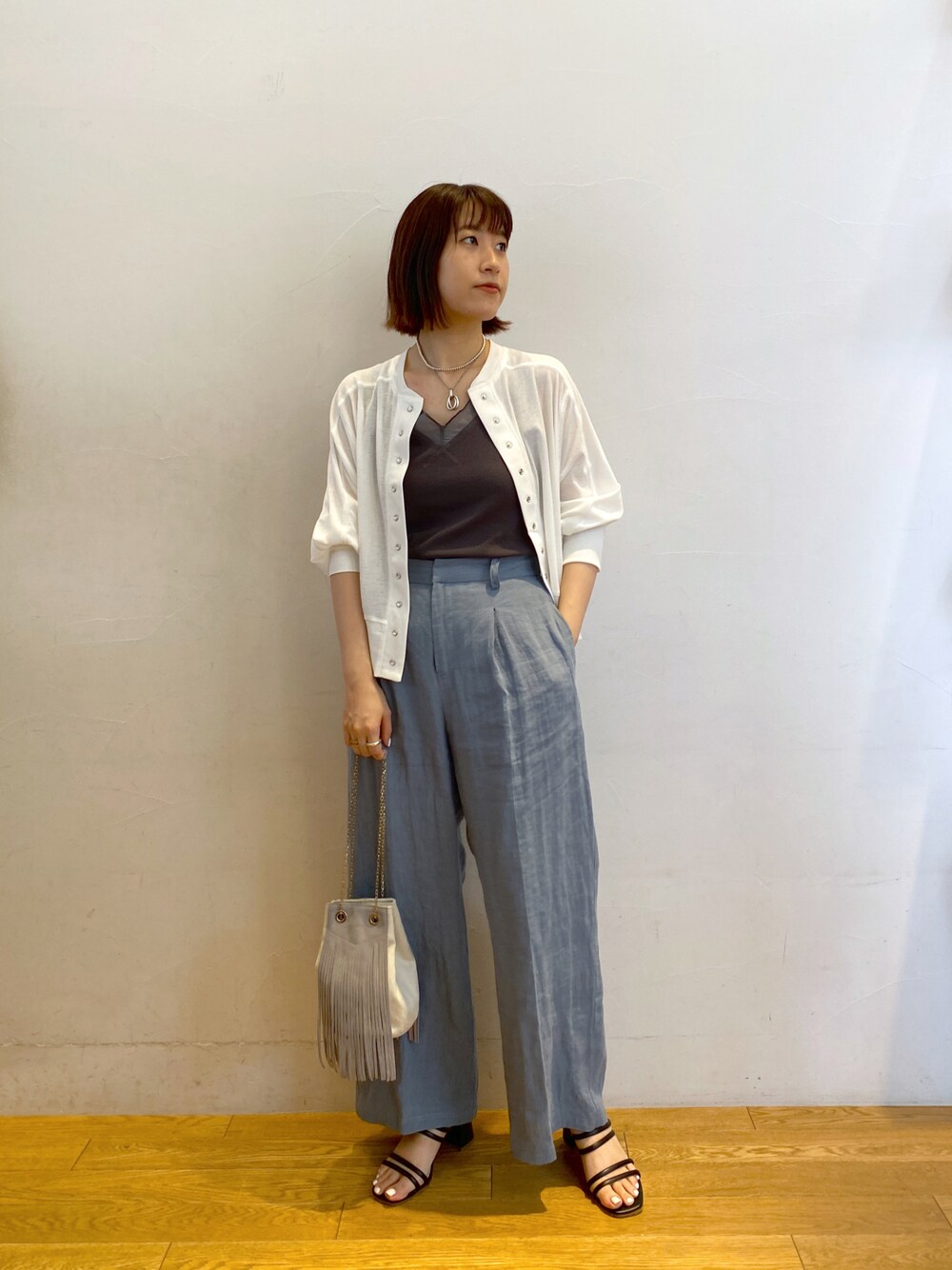 綺麗めカジュアルコーデ⛄️ ワイドパンツには、抜け感が必要かなと思ったので、コンパクトなカーディガンとデコルテが見えるようにタンクトップ合わせで。