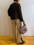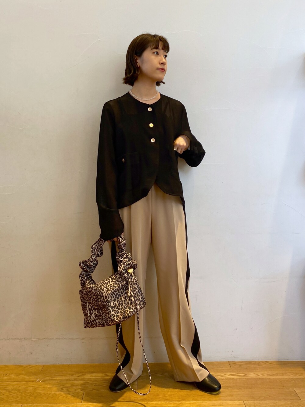 綺麗めカジュアルコーデ。 トップスは前が短めな丈なのでワイドパンツでバランスをとりました。 パンツのサイドの黒のラインとトップス、ブーツは合わせてまとまりのある感じに。 物足りなかったので、柄をバッグでプラスしました。