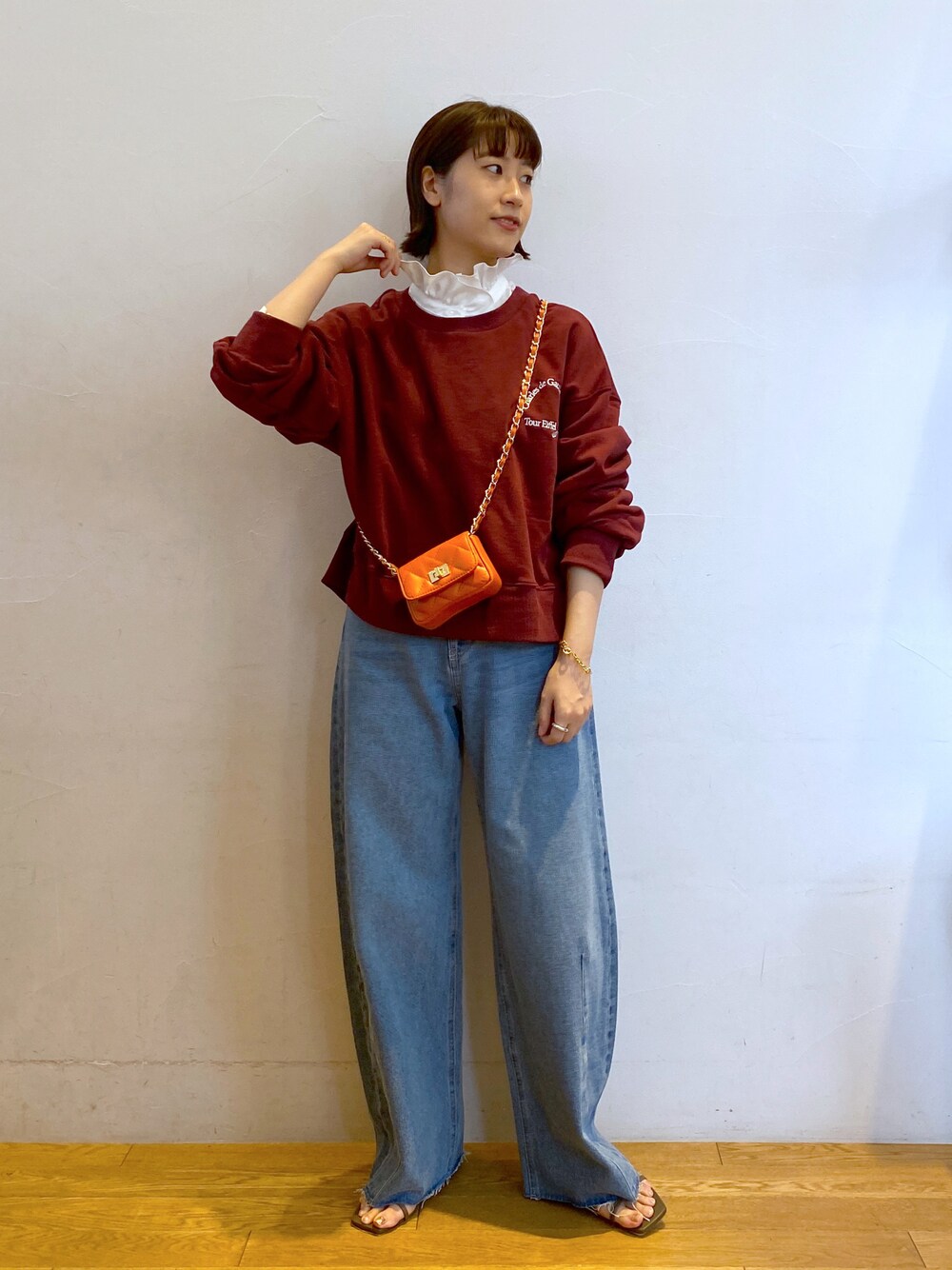 先どり秋服コーデ🍁 メンズライクなスウェットには女性らしいシャツをプラスして女らしさを出しました。 短丈のスウェットなのでワイドパンツでボリューム出すのも◎ Instagram▶︎numa_collage