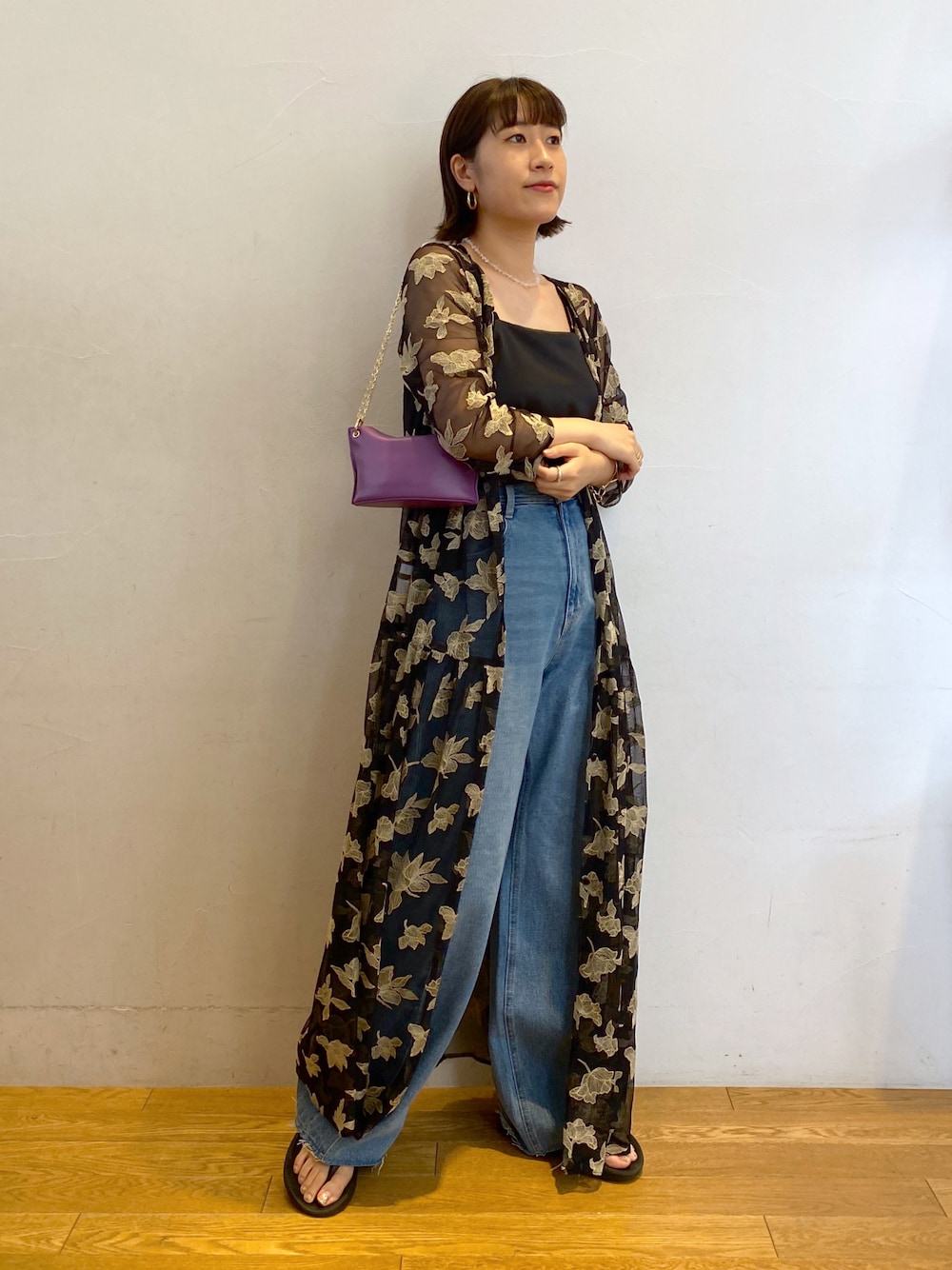 刺繍ワンピ着回しコーデ🟣 せっかくならカジュアルにも着たかったので、デニム合わせしました! インナーは鎖骨が見えるものを選んで抜け感を出しました。 Instagram▶︎numa_collage