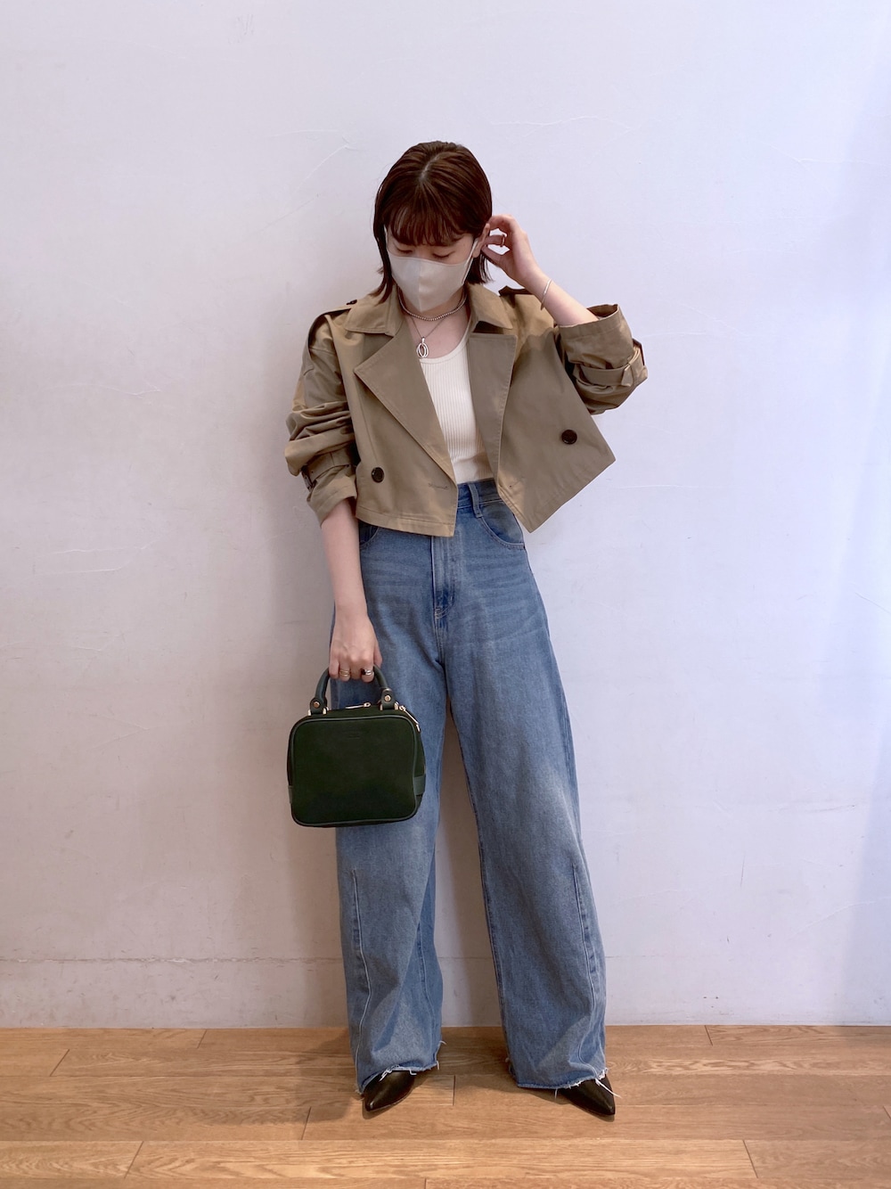 3wayトレンチコートをショートバージョンで着てみました! 脚長効果が凄すぎる、、、 今年は短丈トップスが多いので、それと合わせて着るのがオススメです! ワイドパンツは0サイズを着用しております。