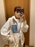 ホワイト×ブルーコーデ🫐 ボアベストのカラーに合わせて他のアイテムもホワイトブルー系でまとめました!