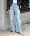 ホワイト🐻❄️カジュアルコーデ ゆったりめなカーディガンには少しスッキリなデニム合わせで。