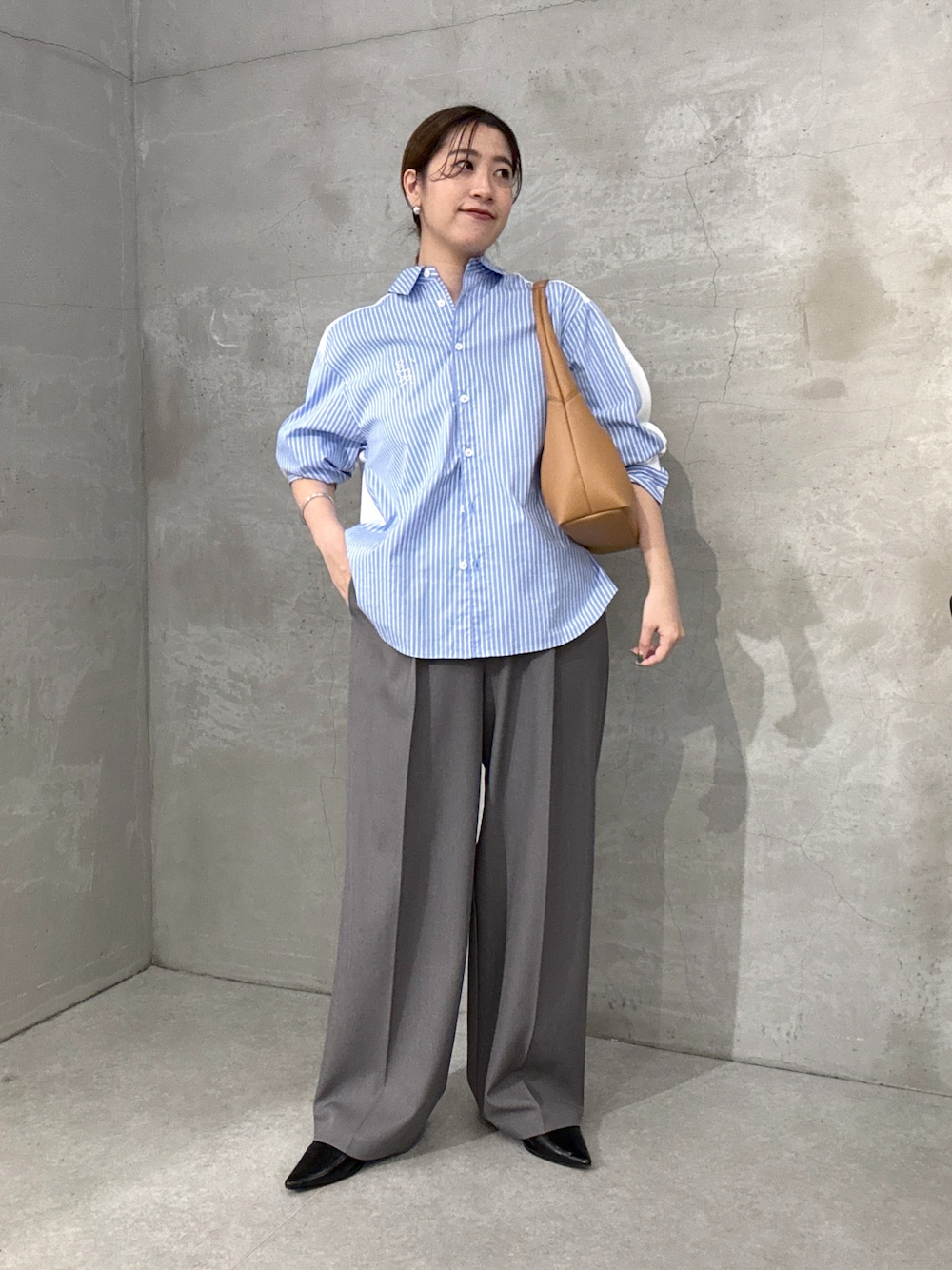 オフィスも行けちゃうシャツコーデ! シャツもパンツもとにかく着てて楽です!