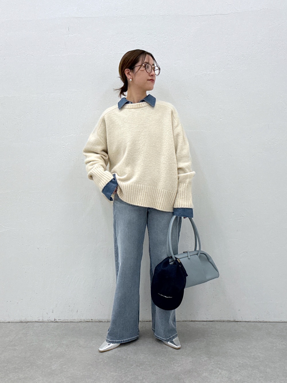 デニムのセットアップもニットを着ちゃえば挑戦しやすい、、!