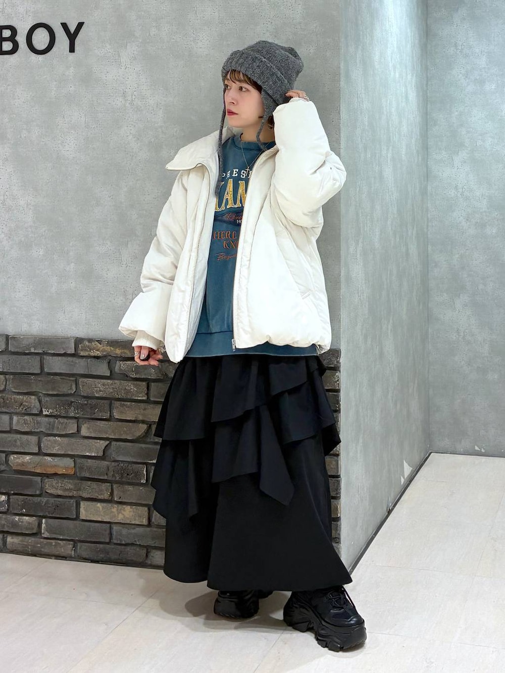 ▼各アイテムおすすめポイント▼ 【アウター】 とにかく軽い‼️ そして着た瞬間から熱がこもるようなホカホカと暖かい🥰 裾はドロストで少し絞っています🐝 【トップス】 ダボっとオーバーサイズのスウェットって、何枚も持ってるのに毎年欲しくなる🤤 156センチでおしりすっぽり隠れるくらい! お尻周りや腰回りカバーしたいピタッとボトムスとの相性も🙆♀️ 【ボトムス】 普段あんまり甘め着ない方でも、トップスがカジュアルなら着やすい🌸 ショートトップスと合わせてティアードのボリューム感を楽しんでも良し、長めトップスでスカートのボリュームを抑えてもかわいいですよ🌝