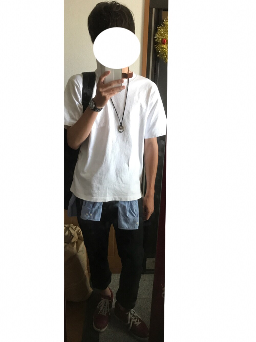 いいね、お気に入りフォローそして見てくださってありがとうございます! デニムシャツで腰巻きをしました! 見にくいですけど、靴は赤色です(ó﹏ò。) もう夏レベルで暑いですね〜 今日も1日頑張るぞいʕ•͡દ•ʔ