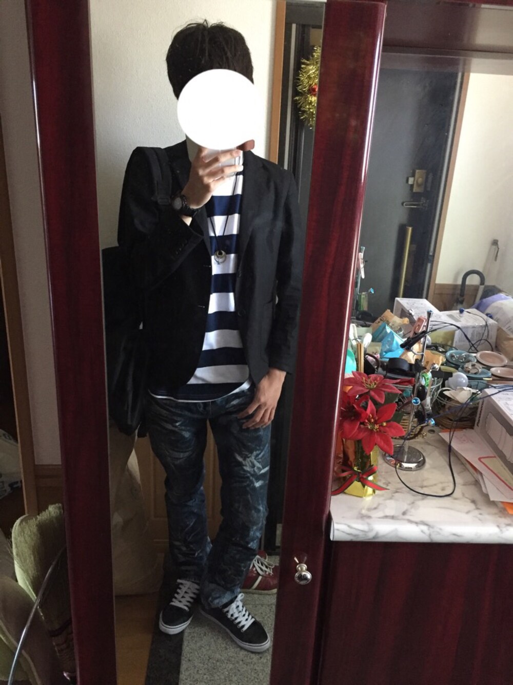 ボーダーシャツ×テーラードジャケット 今回はジーパンがあんまりかな?w もうちょい明るい方が良かったかもw 今日も1日頑張るぞいp(´∇`)q ファイトォ~♪
