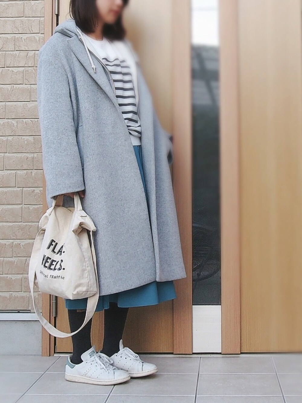休日モード。 こーゆー色好きよねー。 スタンスミスのかかともこれ系の色やしねー。でもこのスカート色ちゃんと写らない😑 チェスターフード出し❗️