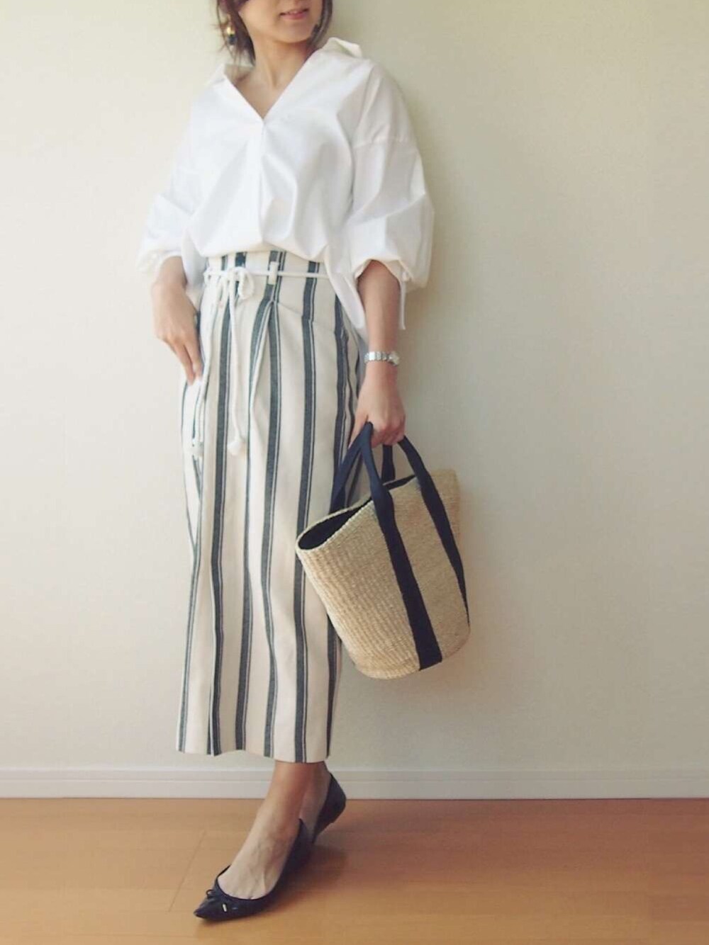 MUNのスカート「Cストライプタイトスカート 786618」を使ったコーディネート