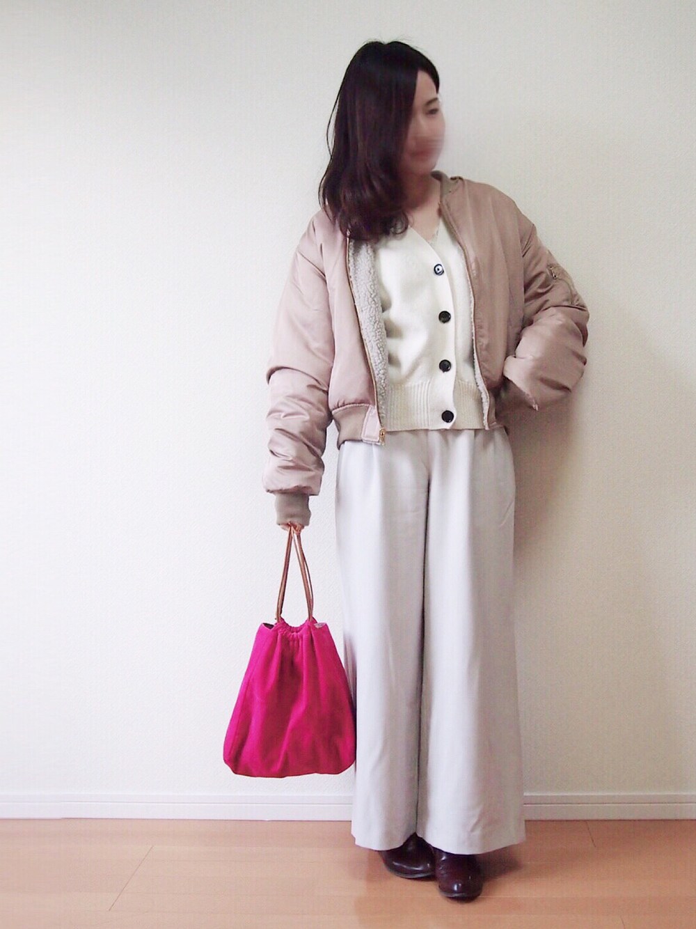 ボアブルゾン案外あったかいし、ワイドパンツは中にたくさん着込める。