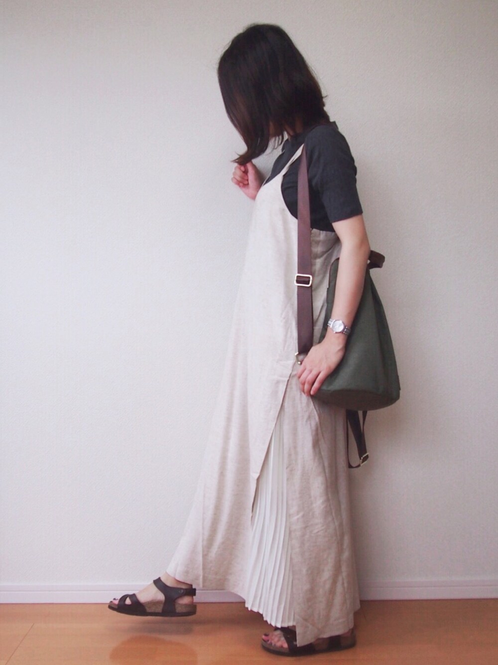 MUNのワンピース「サイドプリーツキャミワンピース」を使ったコーディネート