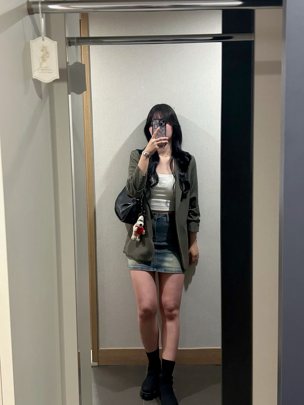 ジャケットにインナーミニ丈はスタイル良く見える