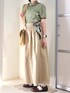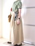 ポロシャツにチノスカートを合わせた、爽やかな初秋コーデ◎ ベルトループに緑のスカーフを巻いてみました🌟 生地のしっかりしたロングスカートなので、足元は透け感のある靴下で軽さもプラス。