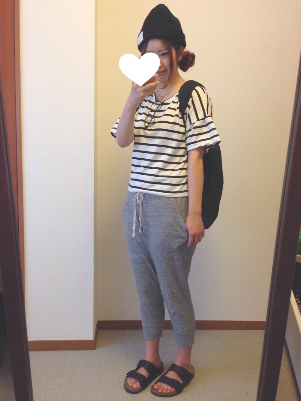 モノトーンコーデ🐒🐒🐒 スウェットパンツがピチピチなのはご愛嬌(笑)😁 猛暑に負けず、水分たくさんとってモリモリ食べましょ✨