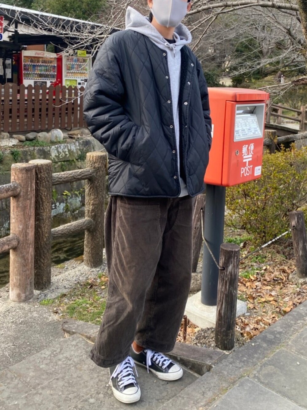 ポストとパシャり。 ゆるっとお散歩コーデ。